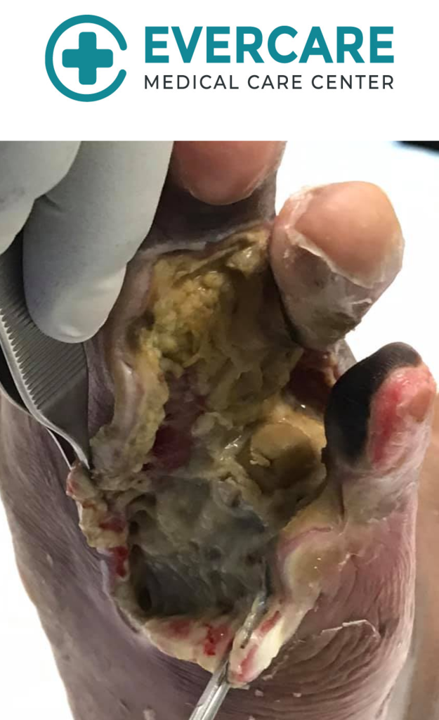 Debridement is an important part of chronic wound management, including the treatment of diabetic foot ulcers. It involves the removal of non-viable tissue, slough, and foreign material from the wound bed in order to support wound healing and improve the condition of the wound.