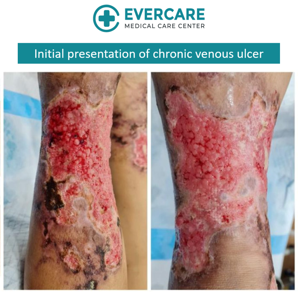 We would like to share a clinical case (published with patient consent) involving one of our patients, a 45-year-old individual who presented with chronic venous ulcers affecting both legs.