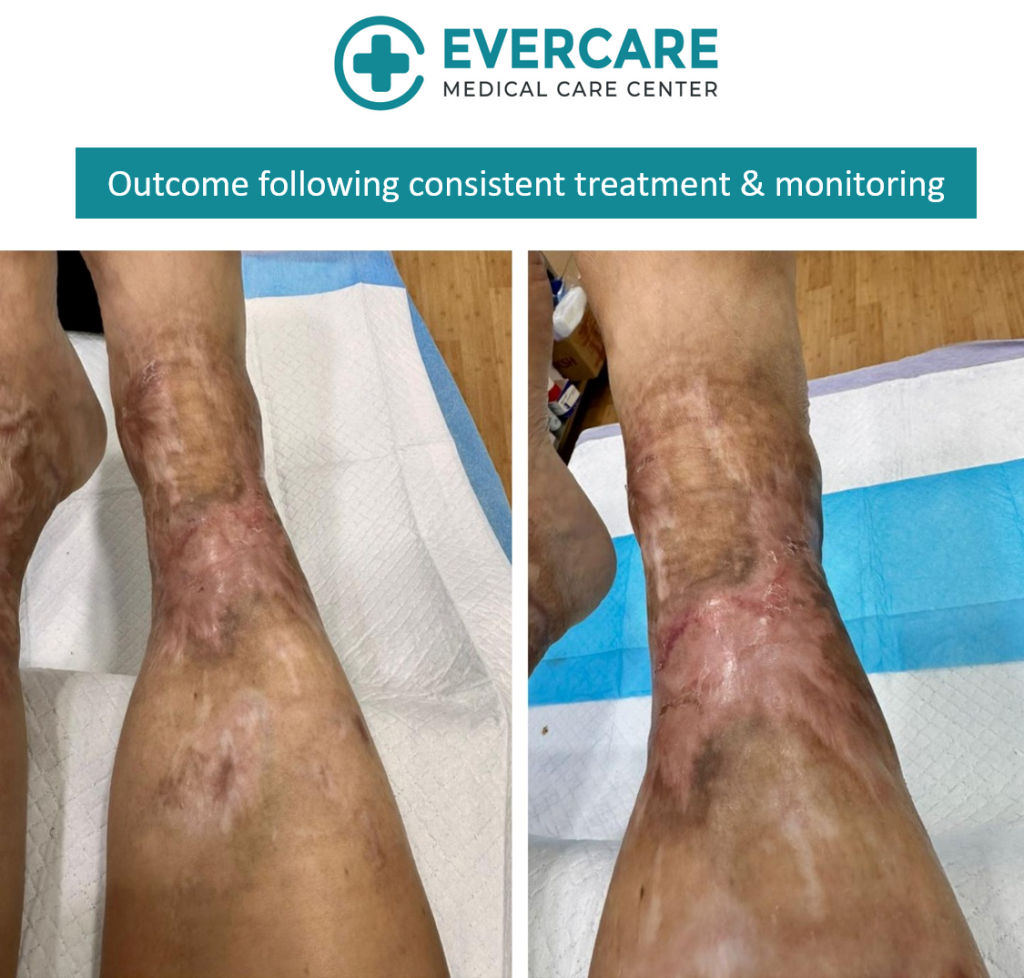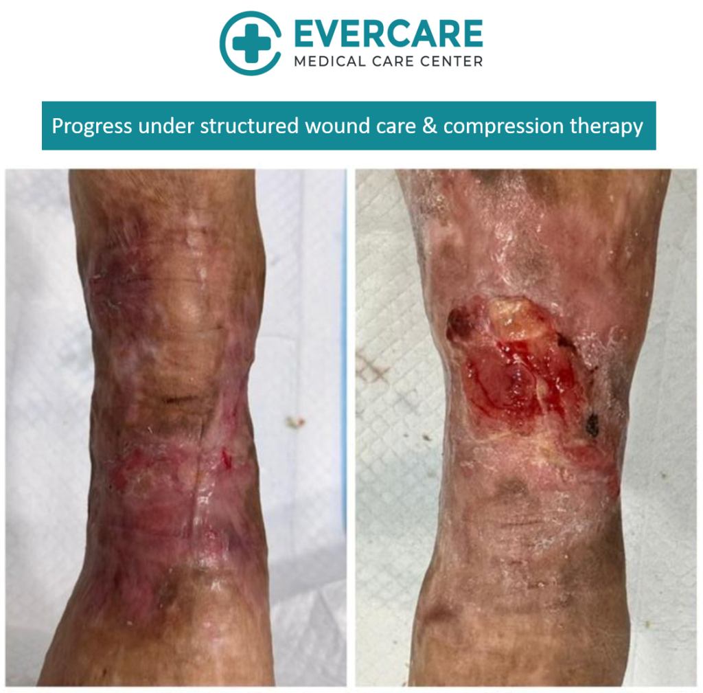 In this case, compression therapy played a key role in supporting circulation and creating an environment conducive to healing, alongside ongoing wound care and monitoring.